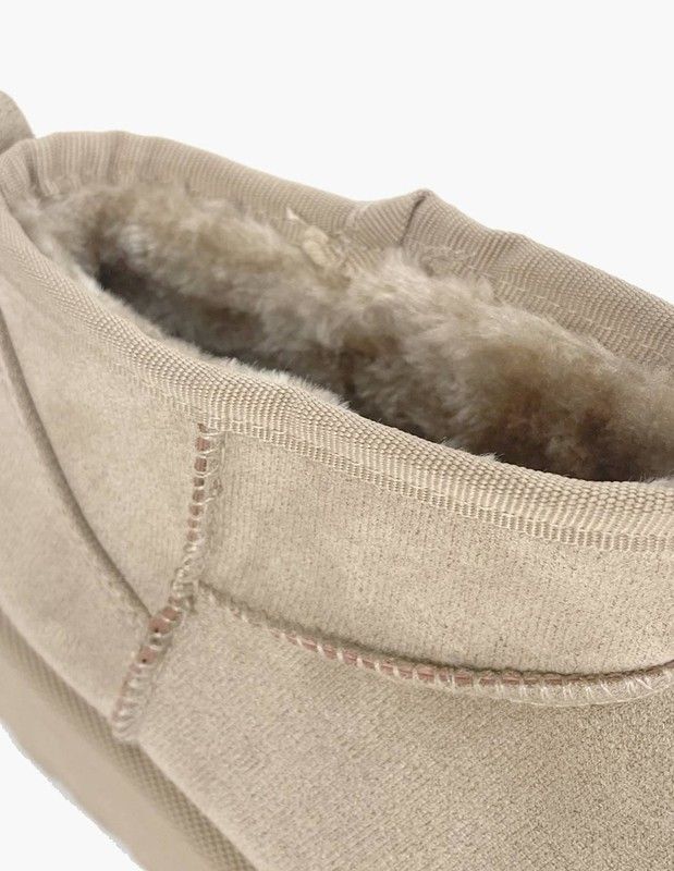Botins estilo snow break confeccionados em camurça bege com sola de borracha eva e detalhe de pele macia no interior. Sola antiderrapante, resistente ao desgaste e flexível. Bota com interior peludo e confortável, esse modelo é bem moderno e ideal para essa estação, vai combinar com todos os tipos de looks. A parte superior respirável e o material de lã de pele sintética mantêm os pés aquecidos no inverno. Sola de borracha durável e antiderrapante.
