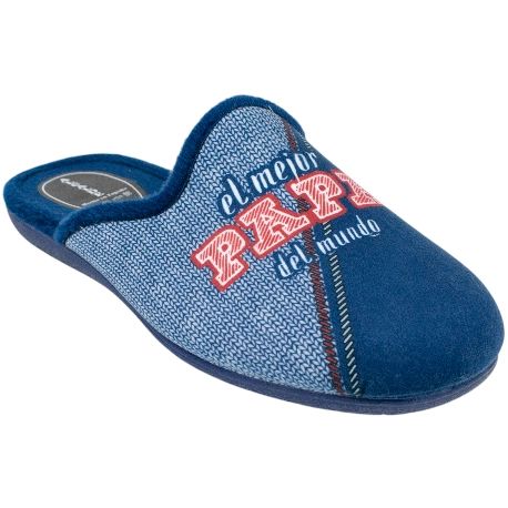 Pantufa de homem azul-marinho, de salto aberto, da marca Alcalde. Apresenta a frase "SER PAI É UMA HONRA" no peito do pé. Fabricada em Espanha com sola de borracha. Disponível em azul-marinho e preto.